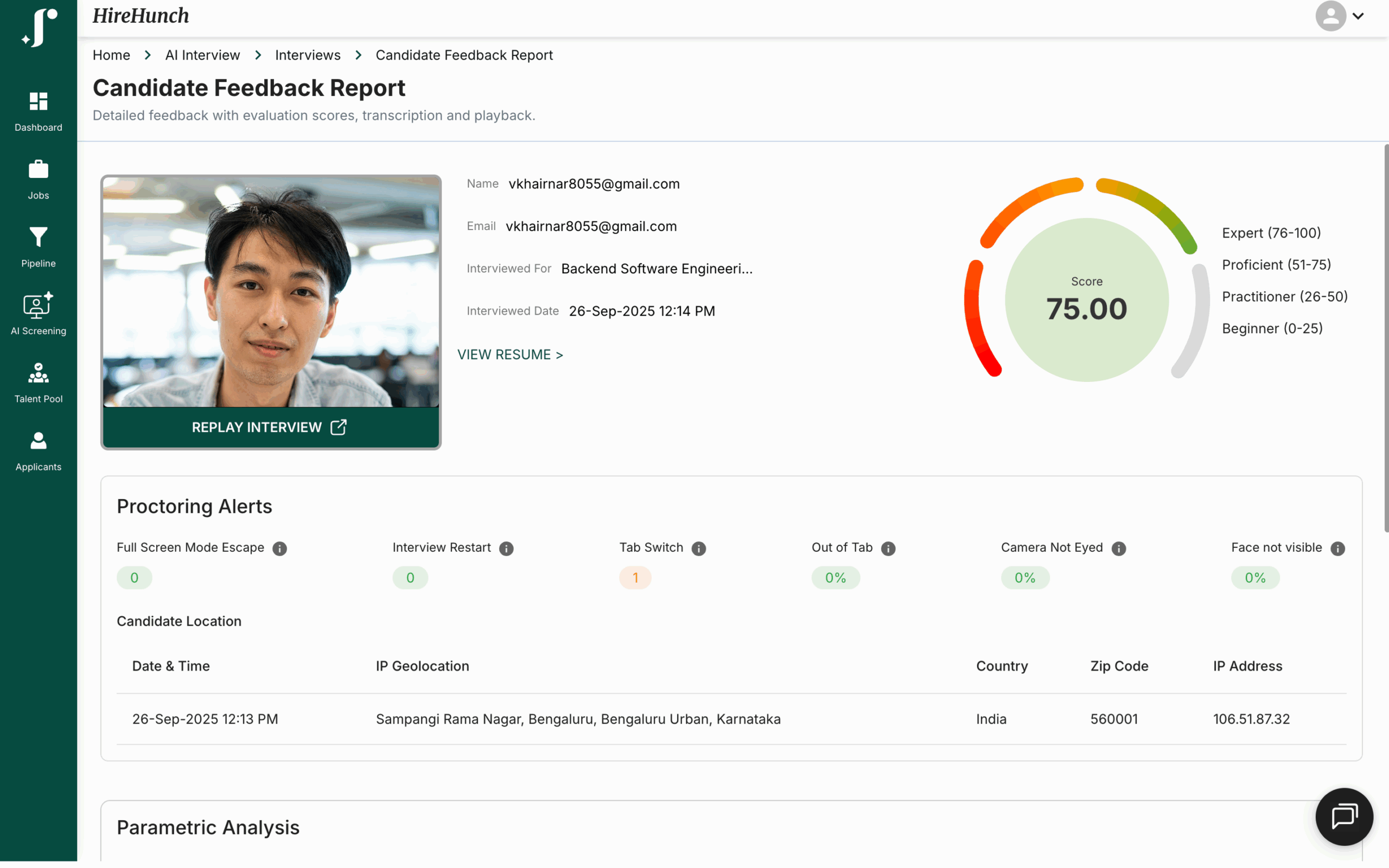 • Interviewer performance feedback