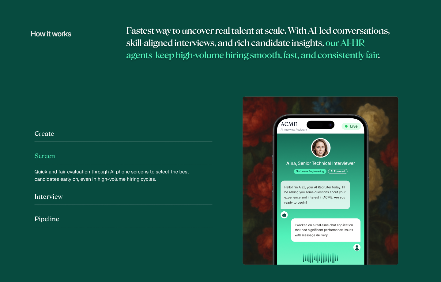 Their sourcing → screening → assessments → interviews data is spread across emails, spreadsheets, ATS, and separate interview tools.