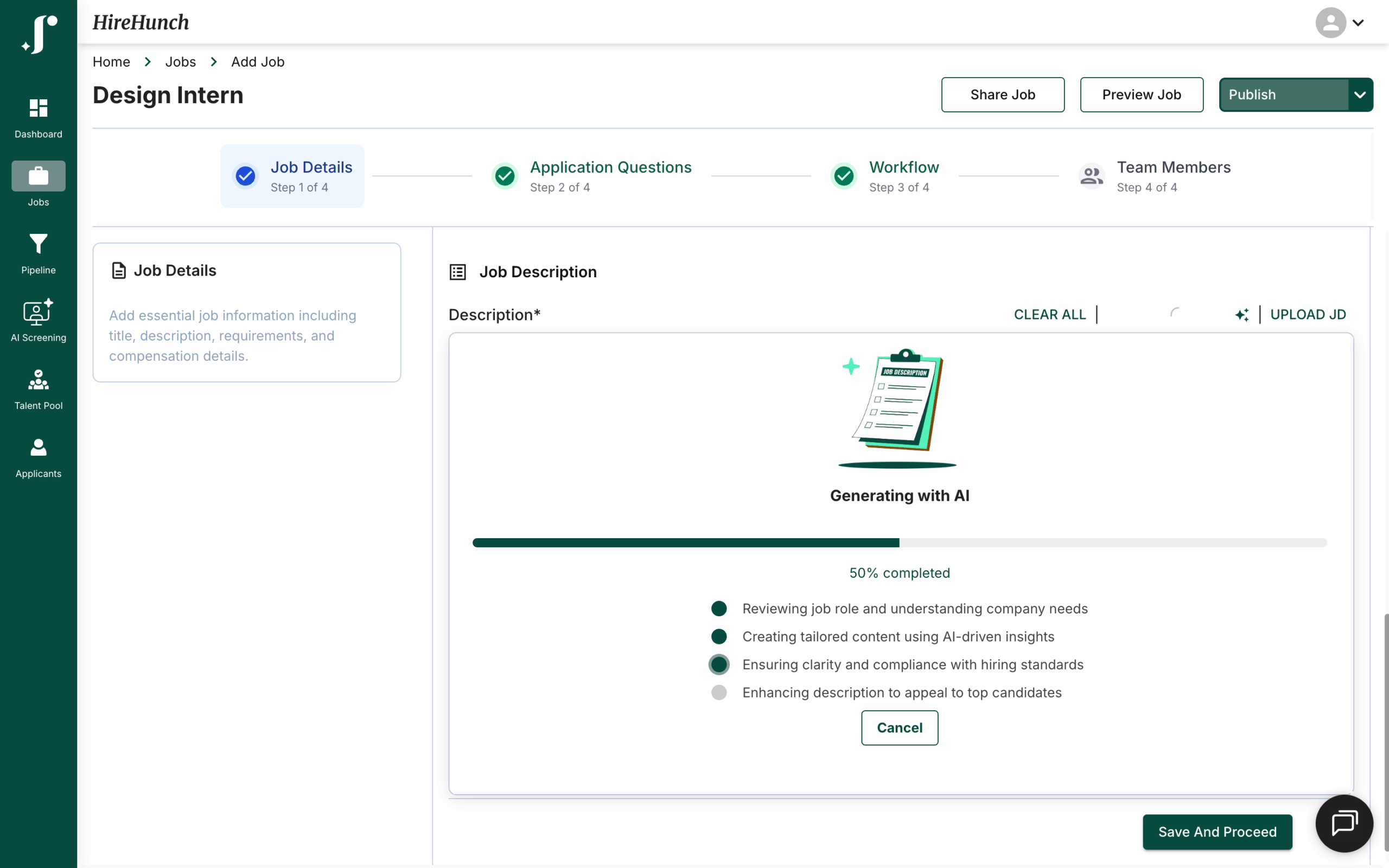 With JusRecruit, promote consistency across job postings by creating a clear, tailored job description instantly with AI.