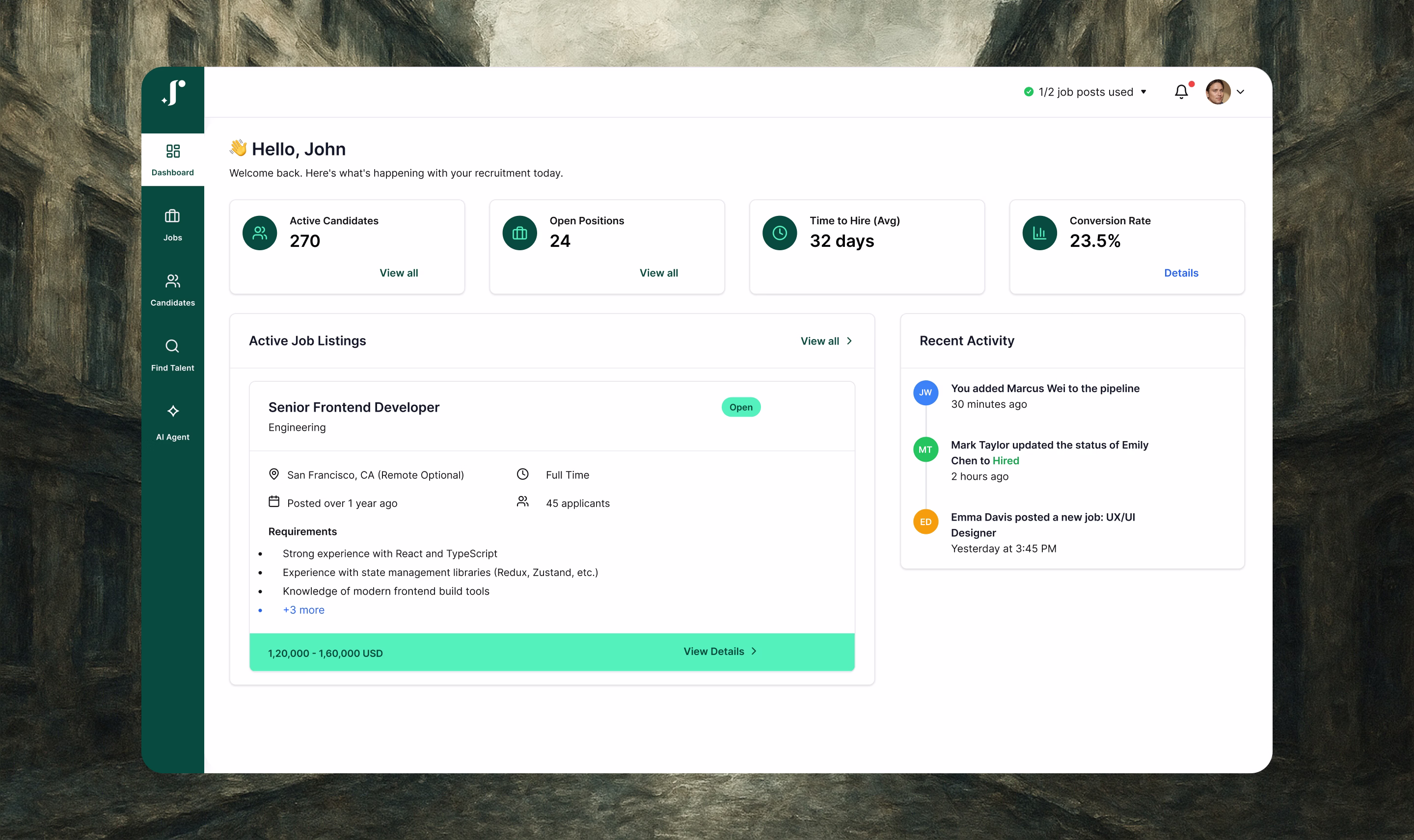 Create your job posts in JusRecruit to seamlessly post on job boards. Connects with your job boards and career pages.